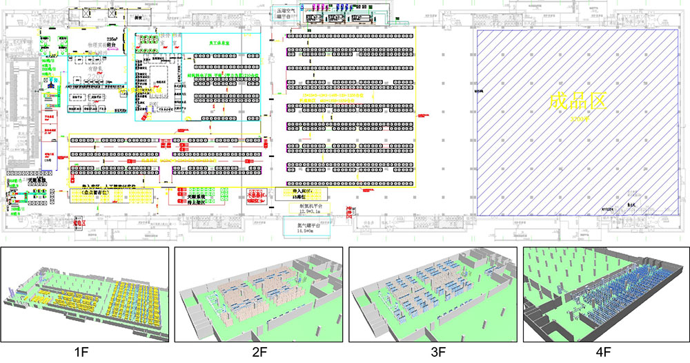 本计划为自动煎煮模式的智慧中药房。。。。。。按两楼层平面妄想,,,,,现实产能2000方/8H,,,,,装备占地约2000平米;;;;;;厂房两层面积约2800平米 。。。。。。